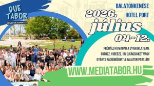 Megnyitottuk a DUE-médiatábor 2026 nevű zárt Facebook-csoportot. Kérjük, hogy jelentkezzen bele az, aki már befizette magát az idei, július 4-12. között Balatonkenesén megrendezendő DUE-médiatáborba. Csak táborlakók és táborvezetőségi tagok jelentkezését fogadjuk el, mert ez a tábor belső üzenőfala. A szülőket, tanárokat, barátokat tisztelettel arra kérjük, hogy a DUE és a médiatábor egyéb nyilvános felületeit kövessék, hiszen mindenről részletesen beszámolunk.