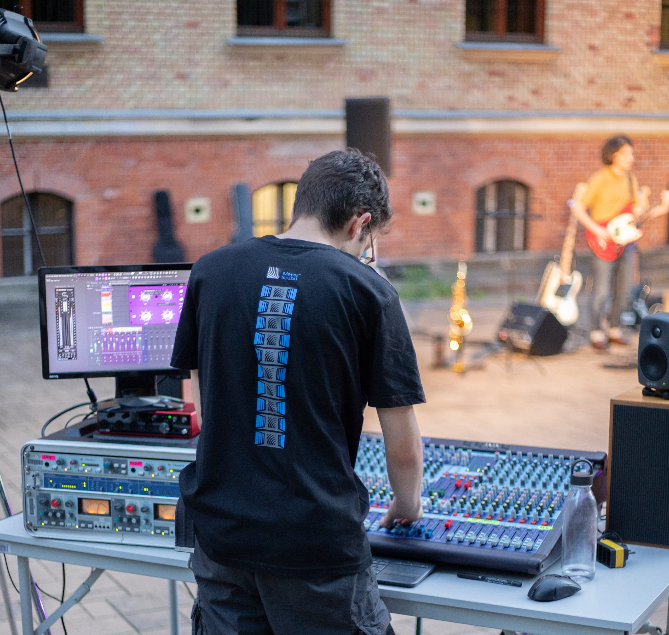 M. B.: A BME és az Óbudai Egyetem között vacillálok. Ezt még eldöntöm a későbbiekben, de a villamosmérnöki szak azért érdekes számomra, mert ott sokkal jobban megértem a technikai dolgok működését, és meg tudom javítani azt, ami elromlik. Szerintem egy hangtechnikus feladata nem csak az, hogy hangosítson vagy megcsináljon egy rendezvényt tip-topra. Fontos, hogy értse a dolgokat a keze alatt, például egy keverőpultot. Ha elromlik, meg tudja javítani – nem feltétlenül teljes mértékben, de meg tudja találni a hibát, vagy vissza tudja vezetni a hibaforráshoz. Szóval ezért a villamosmérnöki, mivel az elektronika, az elektromosság a szakma alapja.