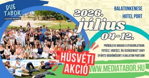 A DUE 45. Kommunikációs és Média Szaktáborát 2026. július 4-12. között rendezzük meg Balatonkenesén, a Kenese Port Hotelben. Gyönyörű környezetben, minőségi szálláson, profi segítőkkel és felszereléssel, számtalan szakmai és szabadidős program résztvevőjeként próbálhatod ki magad újságíróként, rádiósként, videósként vagy fotósként. Megnyitottuk a jelentkezést: a korábbi táborozók most hatalmas kedvezményt vehetnek igénybe.
